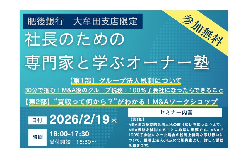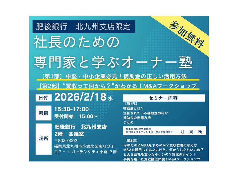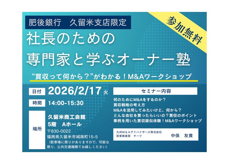 社長のための専門家と学ぶオーナー塾(久留米会場)のご案内